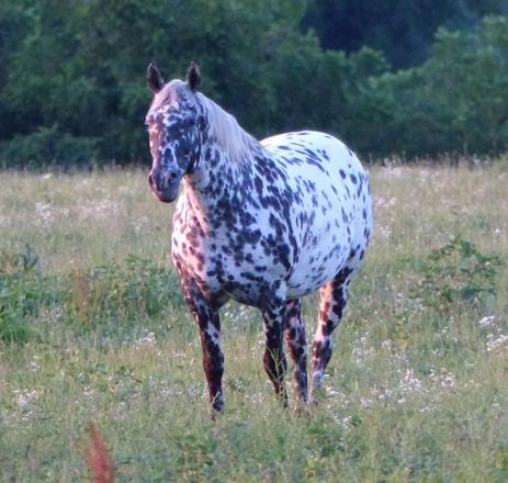 Summers wide full body comes from her sire, Dreamin Dun, and is a perfect cross for Max's tall, lean, athletic build. This is her third baby, and it could be Bay or red based , with appaloosa color. Summer has usually been two weeks late, but her baby is riding very low and her udder is 90% full. So time will tell!