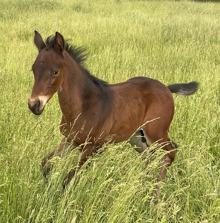Sage 5 panel n/n by her parents' n/n status. This year Sage is again in foal to Dreamin Dun! He is a fewspot. The foal will be either a bay leopard like 2020 or a bay fewspot!